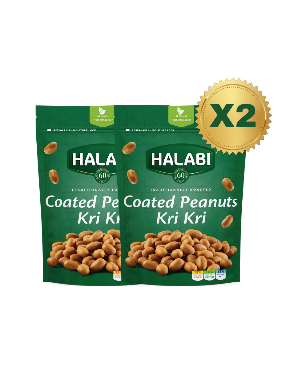 Halabi Coated Peanuts, Lightly Salted, Expertly Coated with Smoky Twist, Crunchy and Savory Snack, Rich in Protein, Great Source of Energy and Essential Nutrients 2 Pack 500 Gram