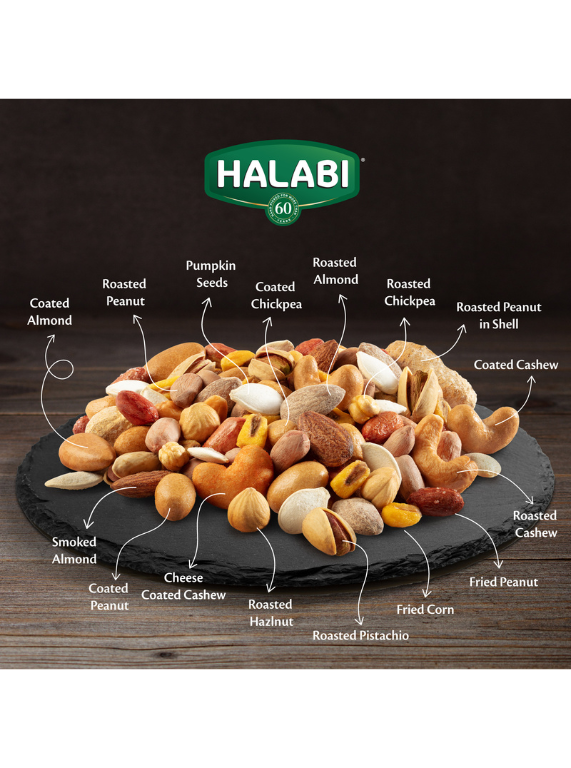 - TRADITIONALLY ROASTED: Halabi nuts and seeds snacks are crafted through traditional kettle roasting method to lock in all the whole nut goodness and create a unique taste and crunchiness.